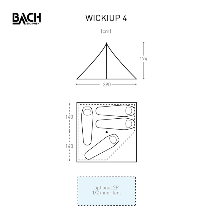 De Wickiup 4 is een lichtgewicht tipi-tent die ook bij harde wind veel ruimte en uitzonderlijke stabiliteit biedt. Optioneel is een binnentent met de helft van de oppervlakte (geschikt voor 2 personen), waardoor de tent op te delen is in een gezellig slaapgedeelte en ruime vestibule.