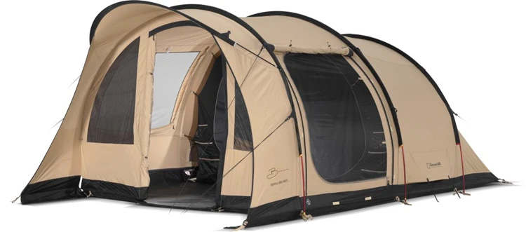 De tunneltent is uitgerust met twee slaapruimte, ieder geschikt zijn voor twee personen. Deze slaapcabines zijn verduisterd en hebben een lengte van 230 cm. De wegritsbare scheidingswand zorgt voor een flexibele indeling van deze slaapcabines.