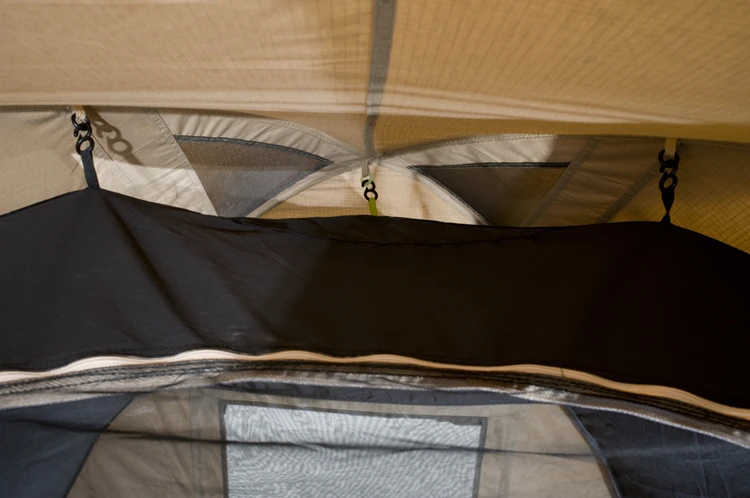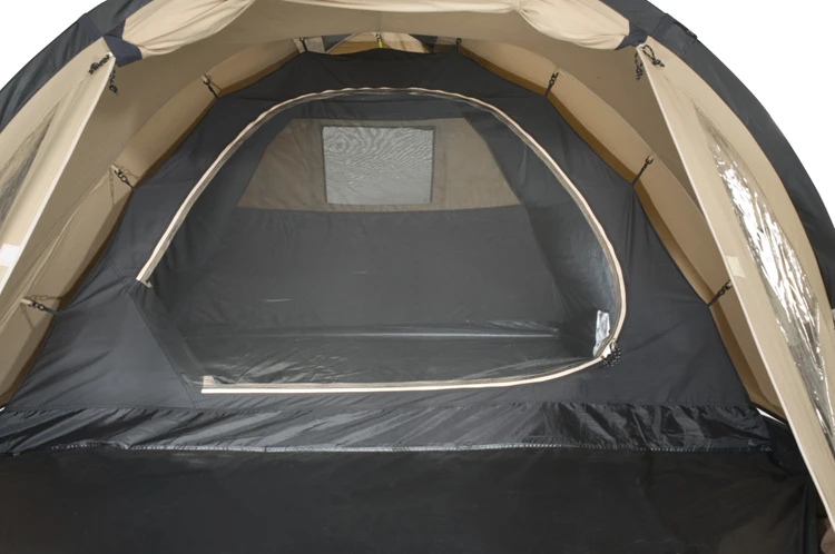 De koepeltent heeft één slaapcabine, geschikt voor maximaal drie personen. Deze slaapcabine heeft een extra donkere binnentent voor optimaal slaapcomfort. Ook de lengte van 230 cm draagt bij aan uw slaapcomfort. De deur bestaat volledig uit horrengaas en ook de achterzijde van de tent is voorzien van horrengaas.