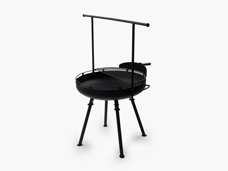 Cowboy Fire Pit Grill System. Maak kennis met je nieuwe buitenkook maatje. Een perfect modulair systeem: Vuurschaal, Grill en BBQ in één. Het verstelbare rooster geeft u de keus: direct of indirecte warmte voor perfecte grill/bak/BBQ condities. De hangstang is een uitkomst voor opbergen van uw kookgereedschap. Na gebruik makkelijk op te bergen door de demontabele poten en accessoire organizer stang. Als accessoires zijn het grillrooster en een side table verkrijgbaar. De Cowboy Fire Pit Base wordt geleverd met een in hoogte verstelbare grill rooster en hangstang voor kookgereedschap. Stevige stalen constructie. Mogelijkheid om 2 side tables te bevestigen. Werkhoogte: 90 cm. Diameter schaal: 74,2 cm. Dikte staal: 2 mm.