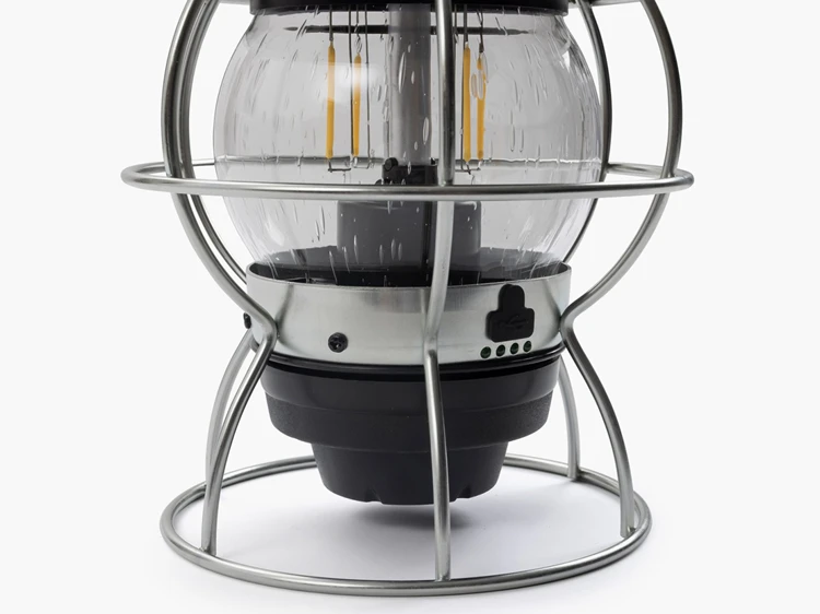 Railroad Lantern. Oude tijden herleven met deze prachtige oplaadbare lantaarn. Een klassieke ogende lamp voorzien van de modernste lichttechnologie. Voor in de tuin, op tafel, in tent/voortent, aan boord etc. Dat kan alleen Barebones ! Sfeervol warm licht ( 3000K). Lichtsterkte:220 Lumen (max). Lichtkleur: 2600 Kelvin.LED: 4 x 1W. Accu: 3,7V, 4400 mAh Li-Ion. Laadduur: 6 uur Micro USB. Materiaal: “Stamped plated” staal. Beschermglas: Seeded glas. Kleurweergave index (CRI): 70-84. Dimbaar: Ja. Brandduur: Low: 100. High: 4 uur. Inclusief USB C kabeltje