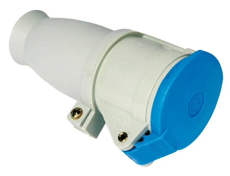 Een 3-polige CEE contra stekker. Maximale stroomsterkte: 16 Ampère.
