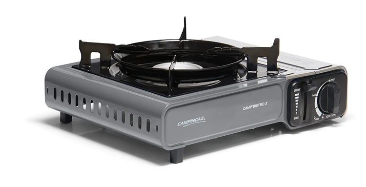 De laatste versie van het succesverhaal van Campingaz, de Camp’Bistro 3, met 2 geïntegreerde veiligheidssystemen, een roestvrijstalen cartouche en een verbeterde pandrager, die voor stabiliteit en een veilig gebruik van het kooktoestel zorgen. Dit stevige gasstel wordt geleverd met zijn eigen draagtas van hard plastic, voor gemakkelijk vervoer en opslag.