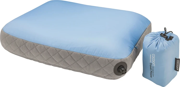 Het Air-Core Ultralight kussen van Cocoon is een ultralight reiskussen met hoogwaardige synthetische vulling. Het Air-Core Ultralight kussen is door middel van een een draaiventiel makkelijk met de mond op te blazen en ook weer leeg te laten lopen. Eén zijde is gemaakt van geborsteld polyester microvezel, dit materiaal voelt zacht en prettig aan. De tweede zijde is gemaakt van glad nylon en is hiermee vuilafstotend. Dit kussen onderscheidt zich ten op zichte van andere reiskussens op twee punten. Ten eerste is het relatief groter dan andere reiskussens zonder veel pakvolume in te nemen. Ten tweede zorgt de synthetische omhulling van het kussen ervoor, dat je niet het gevoel hebt op een ballon te liggen, maar op een volwaardig kussen.Kortom een ideaal reiskussen voor de reiziger, die comfortabel wil slapen.
