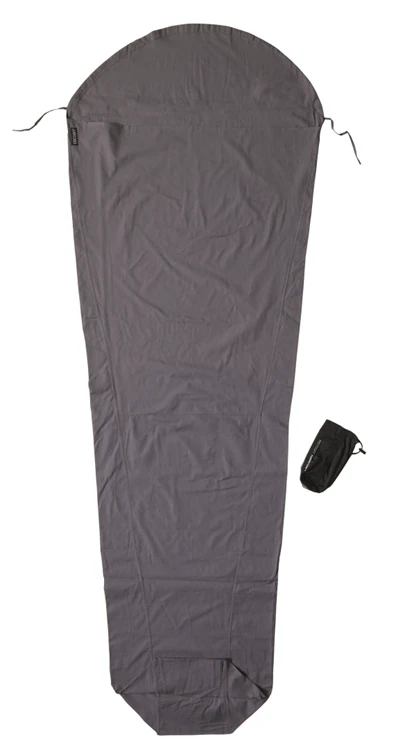 De Mummyliner Cotton van Cocoon is een ruime lakenzak gemaakt van katoen. Katoen is ademend en voelt prettig aan je huid. Het hoofdeinde is voorzien van een capuchon, zo glijdt je kussen niet weg of kan je voor extra warmte de lakenzak strak om je hoofd heen trekken. De zijopening is voorzien van klittenbandsluiting. De naden zijn dubbelgestikt en de ruime opening is voorzien van versterkingen. Het vierkant-vormige voeteneinde zorgt voor meer bewegingsvrijheid.