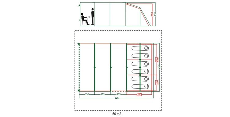 | Afmeting slaapruimte | 210 X 130, 260 X 210 |