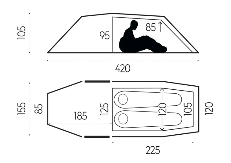 | Afmeting slaapruimte | 225 X 125/120/105 |