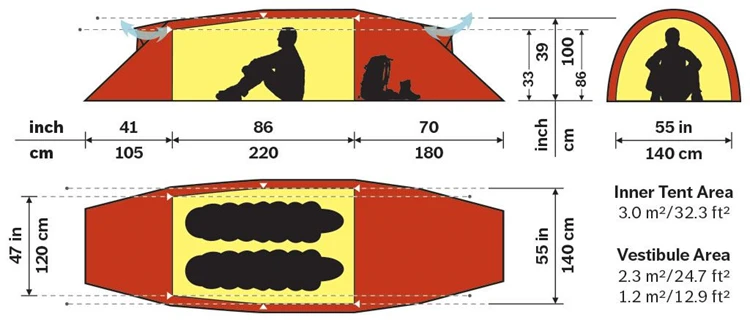 De Kaitum 2 GT van Hilleberg is het type tent dat ideaal is voor trips waarbij het essentieel is dat er zo weinig mogelijk gewicht wordt meegenomen. De Kaitum 2 GT is geschikt om ieder weertype te doorstaan onder een zo groot mogelijk comfort. Het geheim van deze tent is de combinatie van de Kerlon 1200 buitentent en de DAC Featherlite NSL stokken van 9 mm, waardoor het gewicht tot een minimum beperkt blijft zonder aan kracht in te leveren. Het tunnelontwerp is eenvoudig op te zetten en is daardoor geschikt voor zowel trektochten als een verblijf op één locatie. Doordat zowel de voor- als achterkant kunnen worden opengezet, is er een maximale luchttoevoer. Dit maakt de Kaitum 2 GT ook erg geschikt voor warmere omstandigheden.
