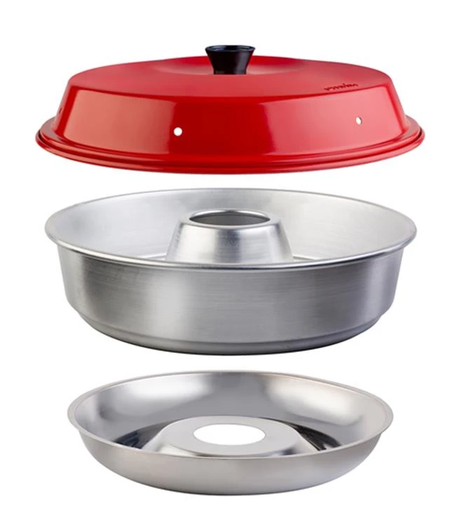 De Omnia oven is een super accessoire om mee te nemen op kampeervakantie of op andere plekken waar je een oven mist. Met deze handige tool kan je bijvoorbeeld broodjes afbakken, cake bakken of hartige taarten maken. Je kan de Omnia oven gebruiken op een gasstel, primus of boven het kampvuur. De oven is gemaakt van aluminium en heeft een doorsnee van 25 centimeter. De oven wordt verwarmt omdat de hete lucht door het gat naar boven wordt getrokken tegen de deksel aan. Bij de Omnia oven zijn ook allerlei accessoires verkrijgbaar.