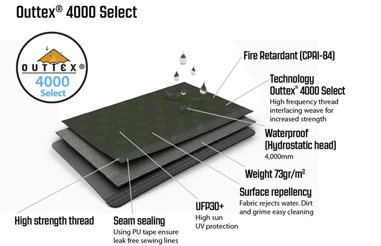 | Materiaal buitendoek | Outtex® 4000 Select, 100% Polyester |