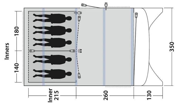Gezinnen die comfort en gemak zoeken tijdens zomervakanties en weekendjes weg, vinden in de Outwell Avondale 5PA precies wat ze nodig hebben. Alleen al vanwege het panoramische uitzicht op de omringende natuur… De diepe luifel heeft grote zijvensters en bestrijkt de geheel te openen voorkant. Zo kun je buiten gezellig relaxen. Om je buitengevoel te versterken, kun je de frontpanelen aan weerszijden van de luifel met haringen uitzetten of juist wegrollen voor een flexibele beschutting. Open je de grote voorzijde, dan kun je met je hele gezin de vrije natuur opsnuiven na een dag vol belevenissen, terwijl je geniet van de ruimte, de privacy en de beschutting als je samen relaxt in de riante leefruimte.