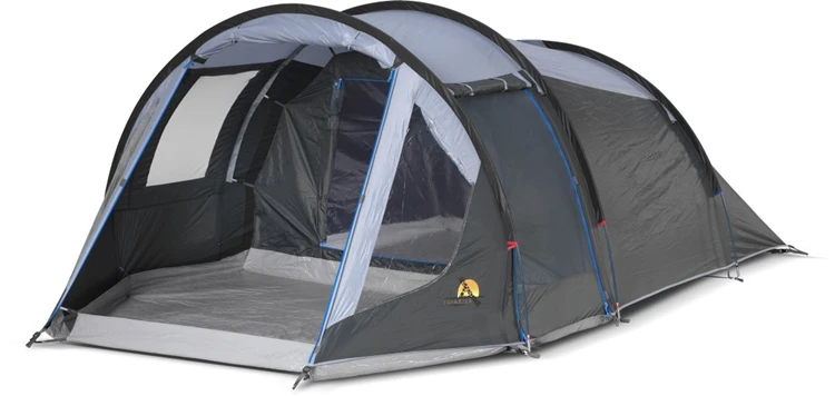 De Safarica Blackhawk 220 tunneltent heeft een royale leefruimte en een handige zij-ingang. De binnentent is extra lang en donker voor meer slaapcomfort. Er zit horrengaas in de deur en achterzijde voor extra ventilatie. Ook heeft de binnentent handige opbergvakken. De tent staat stevig dankzij de glasfiber boogstokken. Het buitendoek is gemaakt van honeycomb polyester met een 4000 mm waterkolom. De ramen zijn afsluitbaar en de naden zijn getaped. Deze Blackhawk 220 tunneltent wordt inclusief draagtas, scheerlijnen en haringen geleverd.