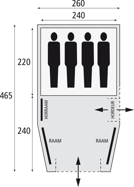 De Safarica Blackhawk 260 tunneltent heeft een royale leefruimte en een handige zij-ingang. De tent biedt ruimte aan maximaal 4 personen. De tunneltent heeft een hoogte van 200 cm, waardoor u makkelijk kunt staan in deze tent. Daarnaast beschikt de tent over afsluitbare ramen en een permanent ventilatiesysteem voor een koele nachtrust. In de binnentent vindt u handige opbergvakken. Deze Blackhawk 260 tent wordt geleverd met een draagtas, haringen en scheerlijnen.