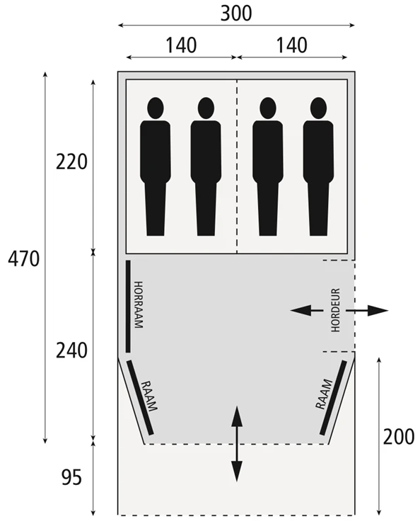 De Blackhawk 300 Deluxe tunneltent van Safarica geeft ruimte aan vier personen. De zij ingang en voorbouw maken het een ruime tent. Dankzij het honeycomb polyester buitendoek is de tent goed bestand tegen regen. De ventilerende binnentent en het permanente ventilatiesysteem zorgen voor een aangenaam klimaat in de tent. De ramen zijn eenvoudig af te sluiten met behulp van de rits en zijn voorzien van een variosysteem. Het PE-kuipgrondzeil zit vast. De tunneltent heeft een aanritsbare luifel en wordt geleverd met haringen en scheerlijnen.