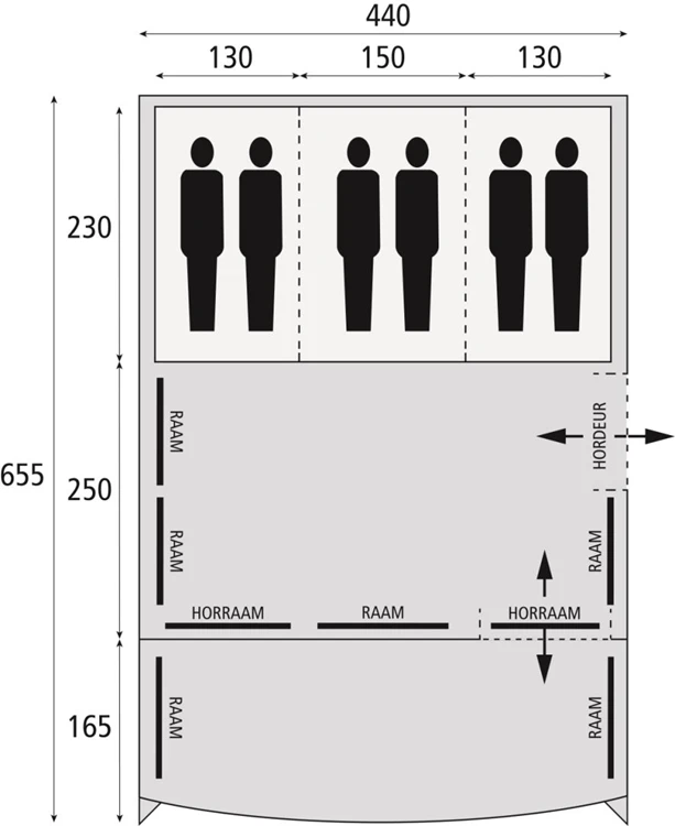 | Afmeting slaapruimte | 230 X 130 / 230 X 150 / 230 X 130 |